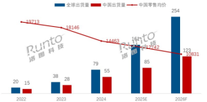 Еще одним фактором, способствующим быстрому росту продаж 100-дюймовых телевизоров, является снижение розничных цен. На типичном китайском рынке средняя розничная цена 100-дюймовых телевизоров неуклонно снижалась с 19 713 юаней в 2022 году до 14 463 юаней в 2024 году. К первой половине 2025 года средняя цена уже упала до 12 941 юаня. Прогнозируется, что средняя цена к 2025 году достигнет 12 742 юаней, а к 2026 году, как ожидается, снизится до уровня ниже 11 000 юаней. Совокупный эффект государственных субсидий, субсидий производителям и субсидий платформам значительно стимулировал и повысил покупательную способность потребителей.