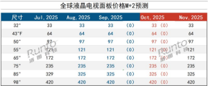 Характеристики рынка ЖК-панелей для телевизоров на сентябрь 2025 г. и прогноз на октябрь